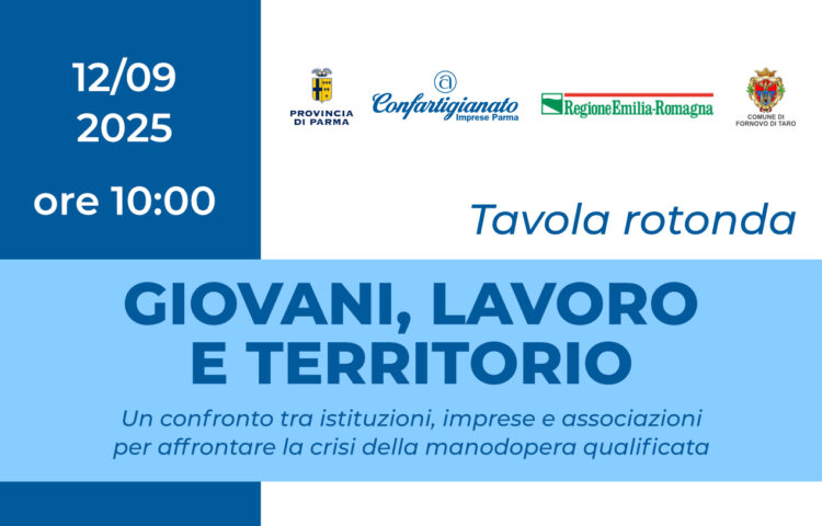 “Giovani, lavoro e territorio. Un confronto tra istituzioni, imprese e associazioni per affrontare la crisi della manodopera qualificata – Il 12 settembre alle 10 la tavola rotonda a Fornovo