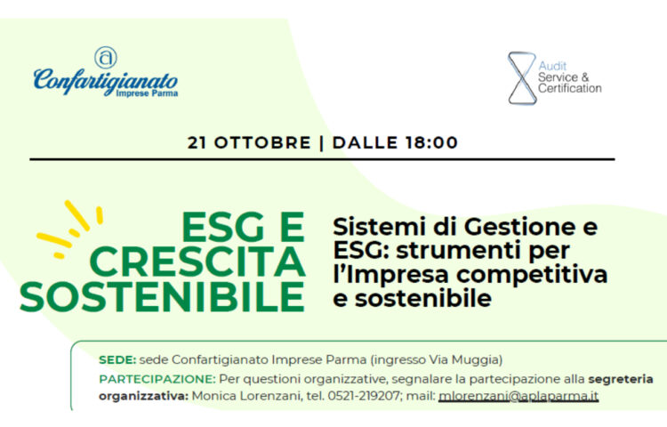 L’evento “ESG e crescita sostenibile” organizzato da Confartigianato Impresa Parma, con la collaborazione di Audit Service & Certification, Organismo di Certificazione internazionale accreditato, si concentrerà sul tema della sostenibilità aziendale, con focus specifico su piccole e medie imprese (PMI).