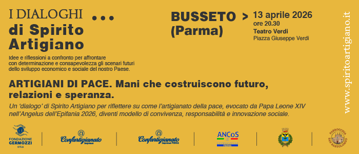 Il prossimo 13 aprile 2026 alle ore 20:30, al Teatro Verdi di Busseto (piazza G. Verdi, 1), Confartigianato Imprese organizza il convegno “Artigiani di pace. Mani che costruiscono futuro, relazioni e speranza”. Un dialogo di Spirito Artigiano per riflettere su come l’artigianato della pace, evocato da Papa Leone XIV nell’Angelus dell’Epifania 2026, diventi modello di convivenza, responsabilità e innovazione sociale.